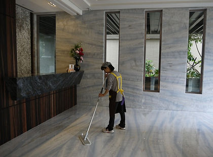 這是大廳的地板,白色的高級大理石石磚非常漂亮,卻也很容易髒,尤其是下雨天時。因此更要時常保持清潔。